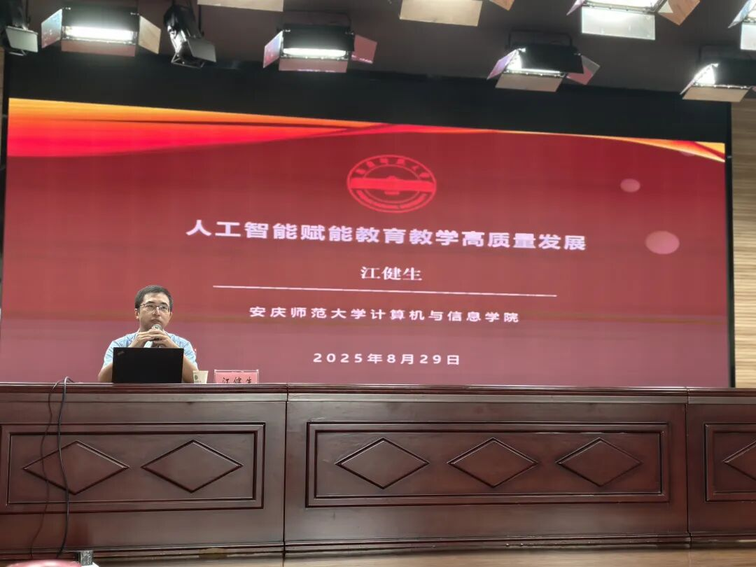 8月29日,计算机与信息学院教师、公园小学副校长(挂职)江健生在公园小学会议室,作题为《人工智能赋能教育教学高质量发展》的专题讲座。公园小学全体教职工参加培训。