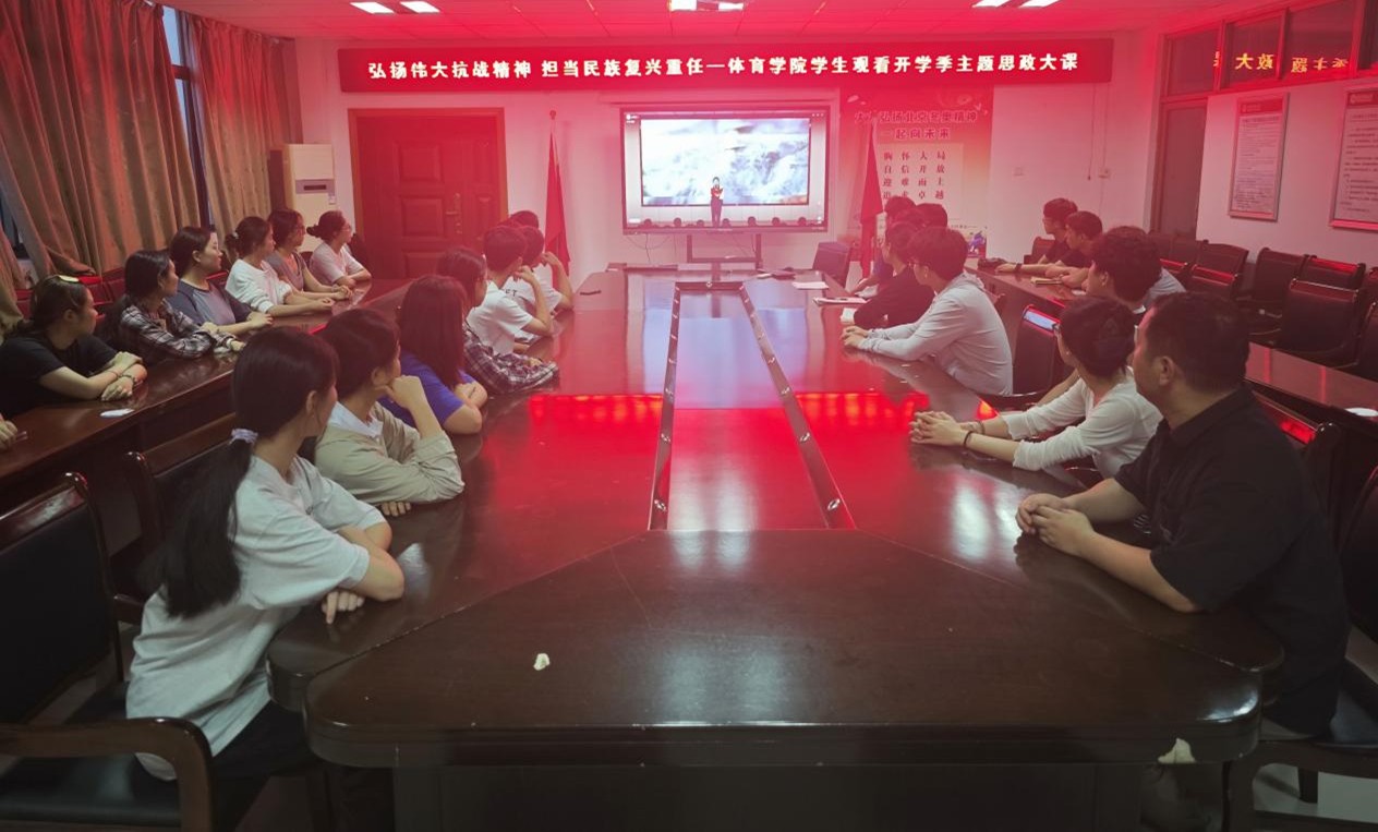 9月18日,体育学院以“弘扬伟大抗战精神、担当民族复兴重任”为主题,在体育馆三楼会议室组织学生集中观看开学季主题思政大课。体育学院团委负责人、学生会成员、学生党员参加学习。