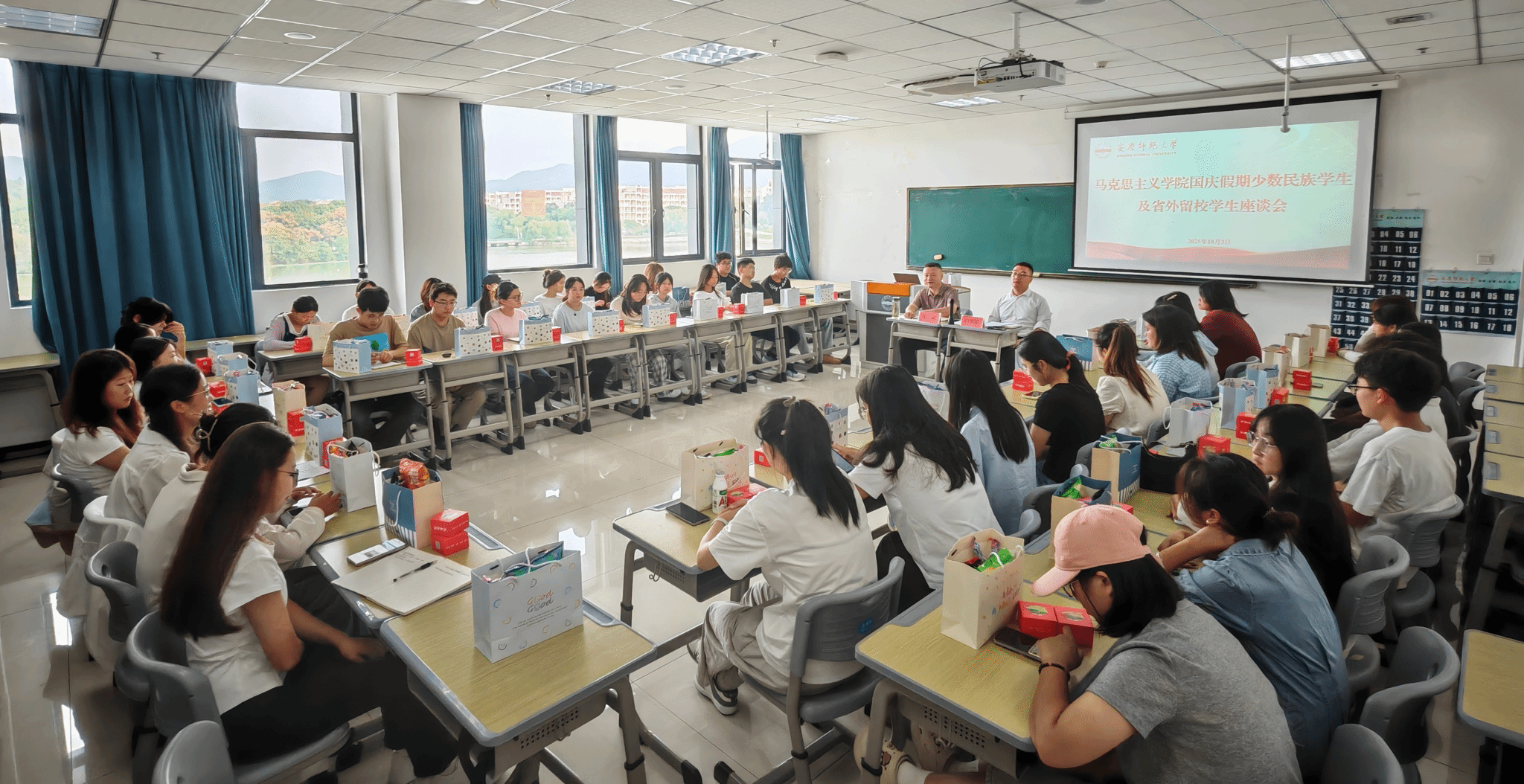 10月3日,马克思主义学院在Q楼308教室举办国庆假期少数民族及省外留校学生座谈会。学院党委书记邹斌出席会议,2024级本科生辅导员田梦甜、少数民族与省外留校学生近50人参加此次座谈会。