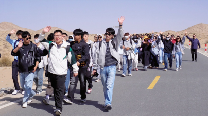 为强健体魄、磨炼意志,志愿服务队组织了集体6公里沙漠徒步活动。队员们迎着风沙,相互鼓励,携手前行,壮美的大漠风光吸引队员们不时驻足欣赏、拍照。支教师生们不仅在挑战自我中锻炼了体力与毅力,也更直观地体会到了边疆自然环境的特征与守护边疆的不易。