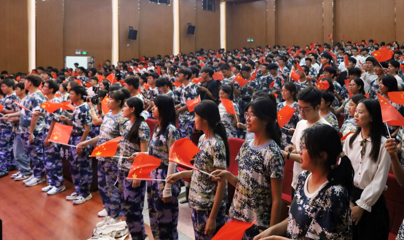 典礼现场,全体师生齐声高唱《歌唱祖国》,鲜艳的五星红旗随歌声轻轻挥舞,澎湃的热血在每个人胸中激荡,浓烈的爱国热情在东报告厅里久久回荡。典礼结束后,2025级新生们纷纷走到“编译青春报国志 运行时代新华章”的红色横幅前,郑重签下自己的名字,将这一意义非凡的时刻深深铭记。