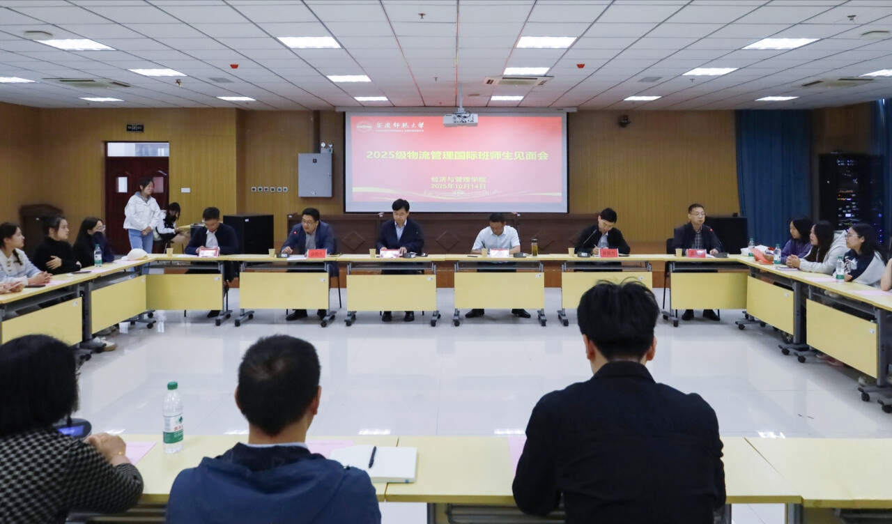 10月14日,经济与管理学院在M112教室举行2025级物流管理国际班师生见面会。国际交流与合作处处长张支南、教务处副处长张俊生,经济与管理学院党政领导、相关教师及全体国际班新生共同参会。会议由经济与管理学院副院长黄光锋主持。