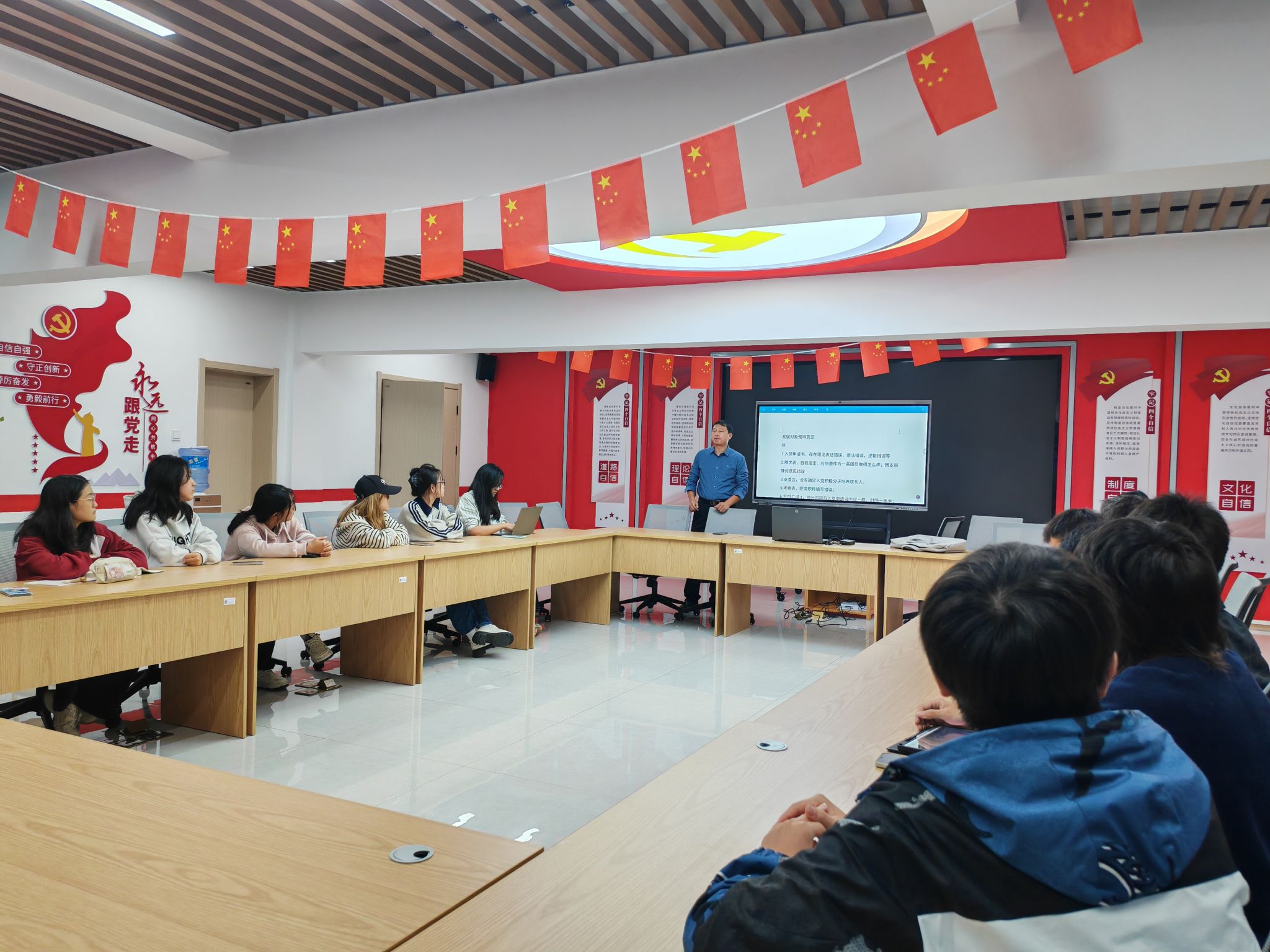 近日,计算机与信息学院“红芯e家”党支部在学生公寓“一站式”学生社区组织开展发展对象专题辅导,学院党委副书记肖之进、全体发展对象20余人参加活动。