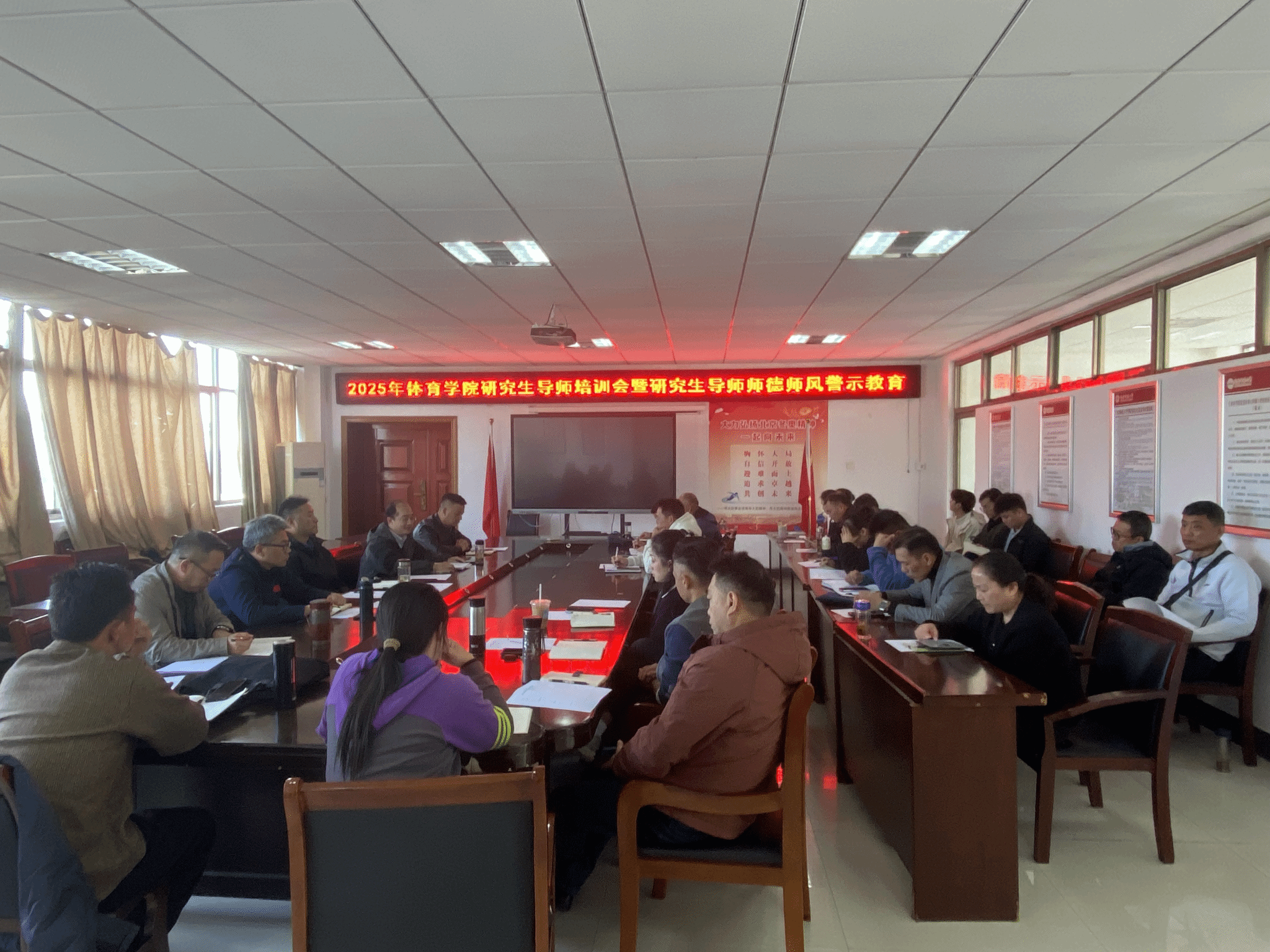 体育学院副院长王晓东带领全体导师系统学习了教育部及学校最新研究生导师管理文件,进一步明晰导师岗位职责与考核要求。副院长孙明运对近期研究生论文抽检、指导、答辩、组会制度等工作作出具体安排。