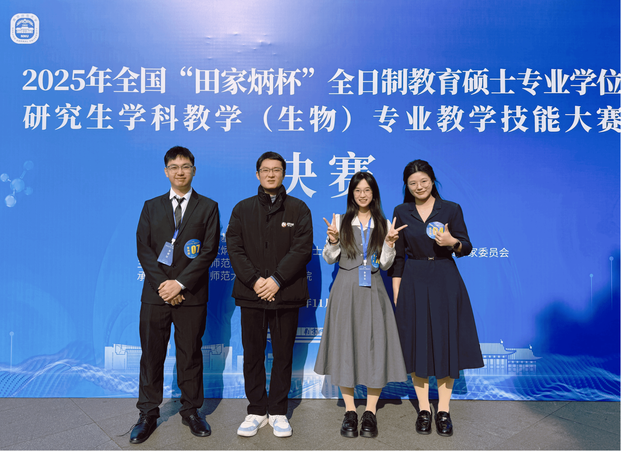 11月21日至22日,2025年全国“田家炳杯”全日制教育硕士学科教学(生物)教学技能大赛决赛在南京师范大学顺利举行。学院3名参赛选手全部获奖,学科教学(生物)专业研究生刘浩然荣获全国二等奖、汤子琳荣获全国三等奖、王婧荣获优秀教学设计奖。