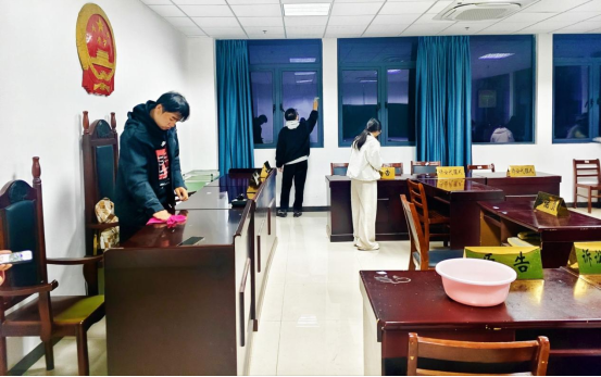 为营造整洁、有序的模拟法庭实训氛围,大学生青年法学会联合法学院六尺巷学生事务服务中心成员开展劳动实践教育活动。同学们分组对模拟法庭的审判台、旁听席、文书资料室进行全面清扫,整理法律书籍、规整庭审道具、擦拭设备仪器,将劳动教育与专业场景深度融合,在动手实践中体会劳动价值,为后续模拟庭审、教学实践的开展提供良好环境保障。