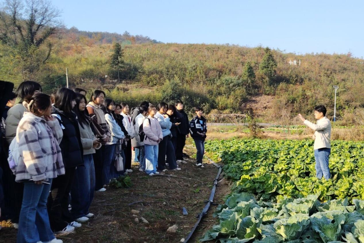 农场负责人先简要介绍了农场的发展历程,生动阐释了这座生态循环农场在守护粮食安全、践行绿色发展中的重要作用;随后又通过细致拆解黄心白向同学们介绍它的营养价值,点明它外裹翠绿、内藏嫩黄,遇光便会悄然变色的特性。