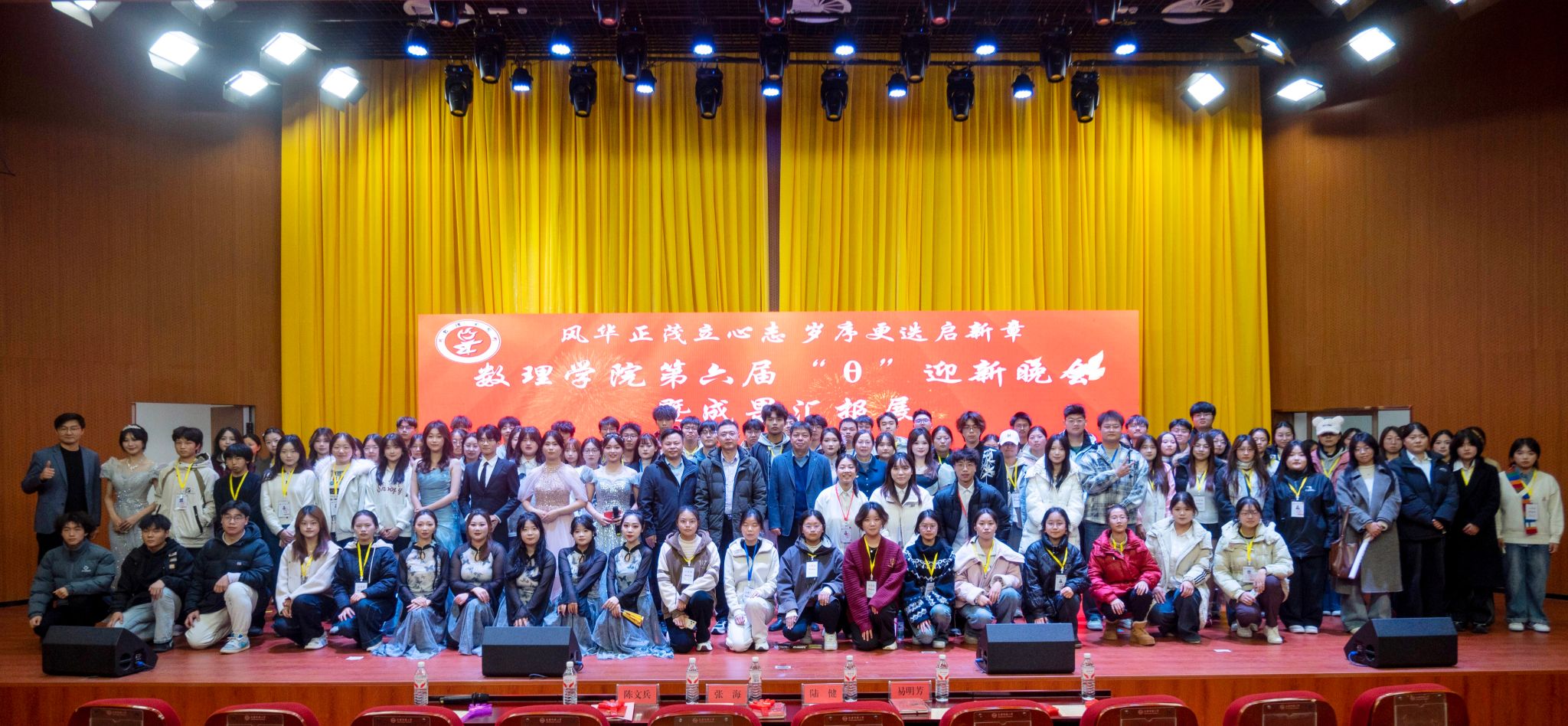 12月10日,数理学院第六届“θ”迎新晚会暨成果汇报展在图书馆东厅举行。数理学院党政班子成员陆健、张海、易明芳、陈文兵出席晚会。数理学院专任教师、新生辅导员以及2025级新生共400余人到场观看演出。