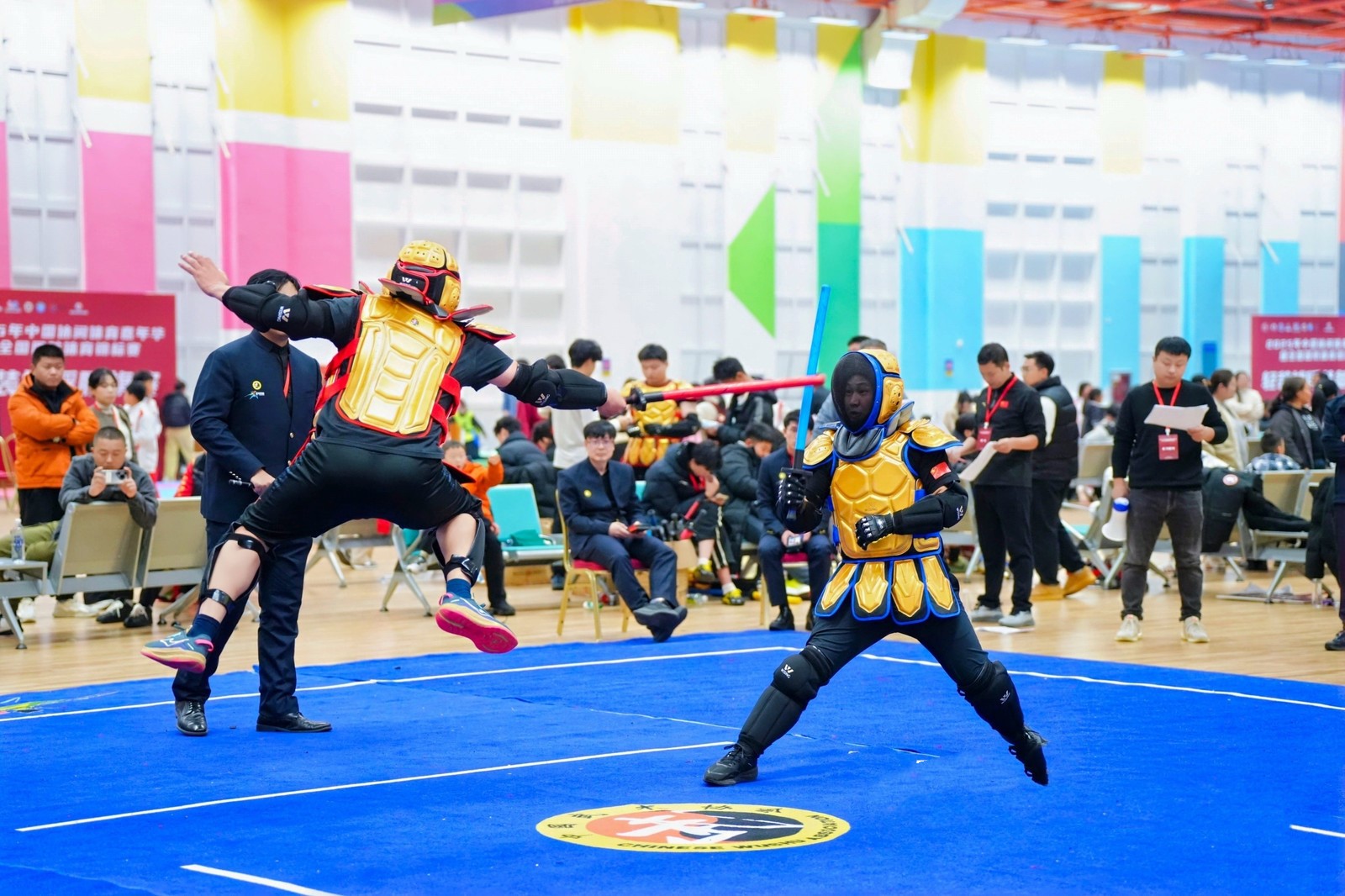 本次赛事由国家体育总局社会体育指导中心主办,为期两天,设有短兵对抗、军事擂台等多个竞赛项目,吸引了全国各省市2000余名选手同台竞技。beat365官网高度重视此次赛事,将其作为开展国防教育、激发学生应征入伍热情的重要契机。体育学院程启平、学生处王友兵两位老师担任教练员,精心选拔并指导胡星宇、李文滔两名退役士兵学子参赛,两人分别参加了短兵对抗(个人赛)和军事擂台(个人赛)两个项目的高校组角逐。备赛期间,在教练员的科学指导下,两人针对竞赛规则和项目特点,刻苦训练、精益求精,从体能强化到技术打磨,从战术制定到心理调适,做好了全方位的准备。赛场上,面对强劲对手,beat365官网学子沉着冷静、奋勇争先。在短兵对抗赛场,他们身法灵活、攻防有度,精准把握每一次出击时机;在军事擂台竞赛中,他们秉持着军人坚韧不拔的意志品质,严守竞赛规则,充分展现了扎实的竞技功底和良好的体育道德风尚。经过多轮激烈比拼,胡星宇凭借出色表现荣获短兵对抗高校组男子85KG+1第三名、军事搏击项目高校组男子90KG+1第二名;李文滔斩获短兵对抗高校组男子60KG第三名、军事搏击项目高校组男子59KG第三名,用实力为学校赢得了荣誉。