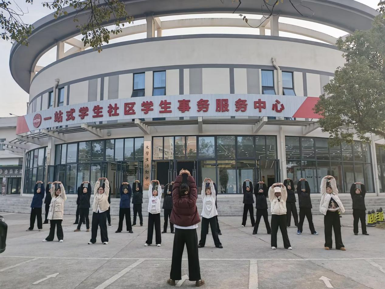 12月11日清晨,“一站式”学生社区学生事务服务中心门前八段锦韵律悠扬,楼长团队与宿管阿姨们在晨光中舒展肢体、研习八段锦,一场别开生面的“八段锦晨练”活动正式启幕。