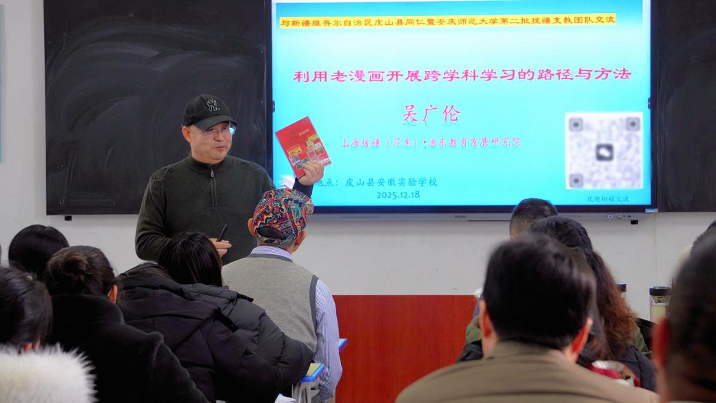 12月18日,学校第二批援疆支教志愿服务队与皮山县安徽实验学校共同举办“师大课堂”教育质量提升系统工程第六期活动。活动邀请上海市浦东教育发展研究院历史教研员、莎车县历史学科特邀教研员、浦东援疆教师教育研修中心顾问、正高级教师吴广伦和上海市上南中学东校教师、浦东援疆教师教育研修中心教研员、beat365官网1997级历史系校友杨红波作专题讲座。相关学科的支教队员、安徽援疆教师和安徽实验学校本地教师共同参加。活动由安徽实验学校第一校长孙金乙主持。