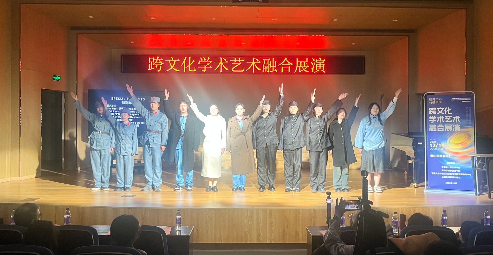 近日,安徽省比较文学年会“跨文化能力提升工作坊暨实践成果展示活动”在黄山学院顺利举办。外国语学院2025级外国语言文学类3班师生原创并演绎的英文话剧《追风者·信仰》受邀参加跨文化学术与艺术融合展演,凭借深刻的主题立意、真挚的情感表达及精湛的舞台呈现脱颖而出,成功斩获“优秀作品”称号。