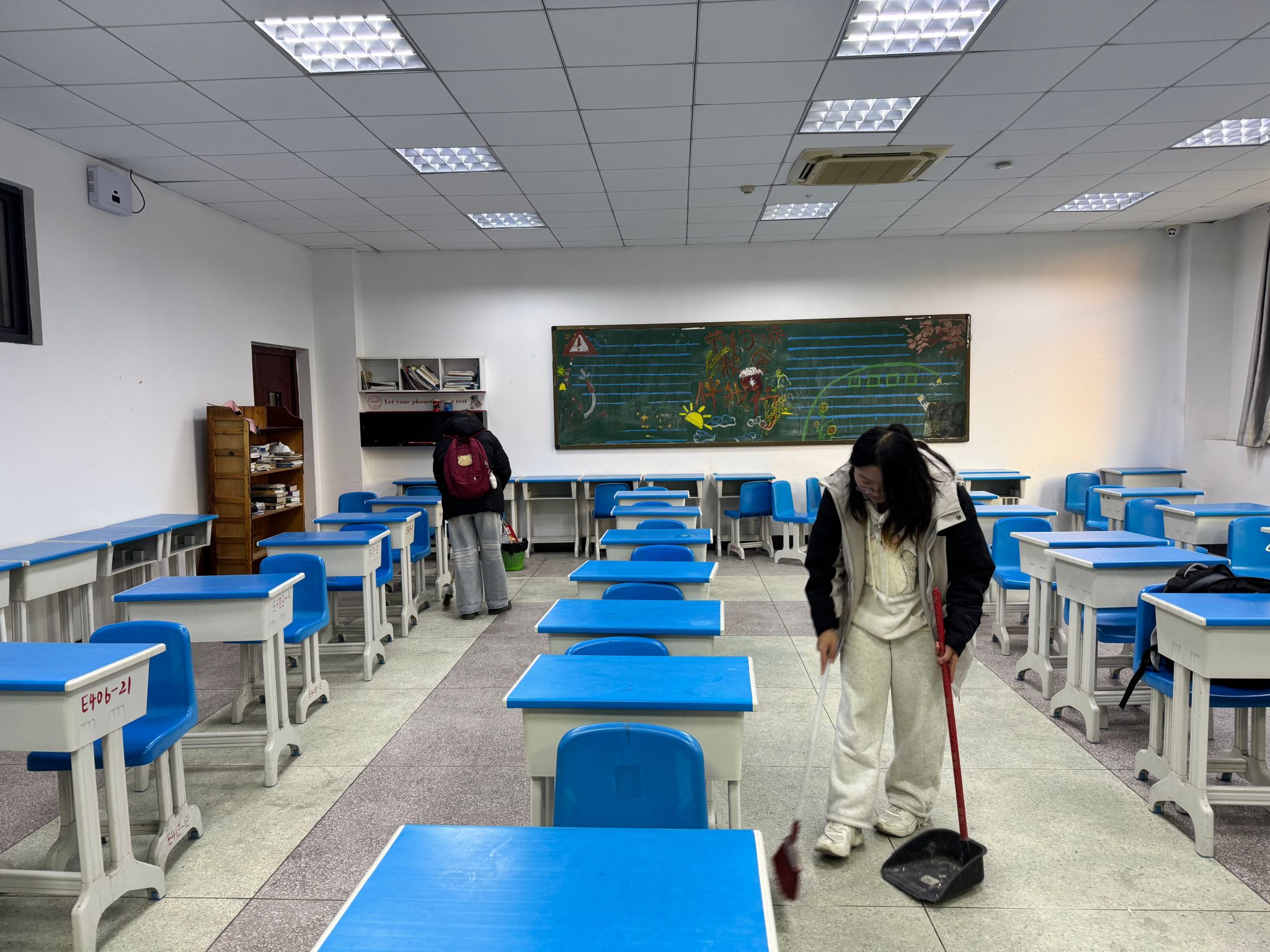 清洁打扫展新貌。活动过程中,同学们满怀热情,投入到外国语学院楼宇环境的细致清扫中。他们对教室、中庭等区域进行了全面保洁,尤其注重对卫生死角的深度清理,不遗漏任何一处污渍杂物,经过辛勤劳动,相关区域变得窗明几净,环境面貌焕然一新。此过程不仅是对校园环境的美化,更是对学生劳动技能、责任担当意识的现场教学与锤炼,使学生在挥洒汗水中体会劳动不易,珍惜劳动成果,树立正确的劳动观。