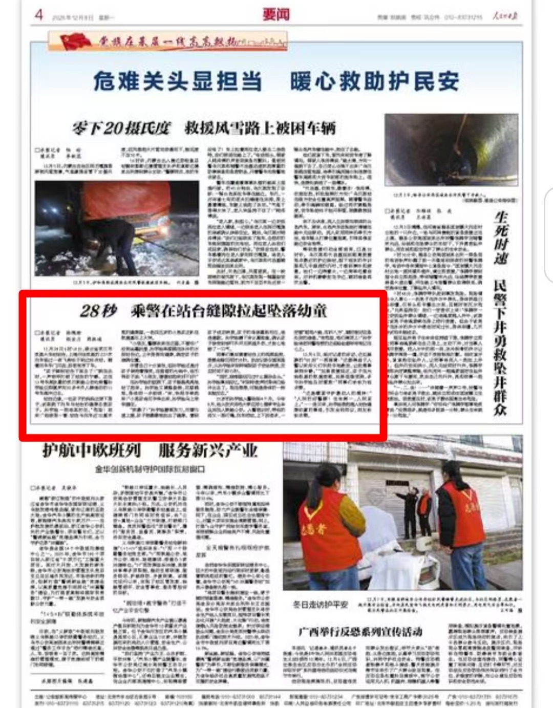监控记录显示,这场救援全程仅用时28秒,从孙宇晗闻声出动到成功救人,反应时间不足15秒。“当时,我脑海里没闪过什么复杂念头。”孙宇晗事后回忆,“听到呼救声时我的身体就已经冲出去了。现在想想,这可能是身体的一种本能反应。”他说。