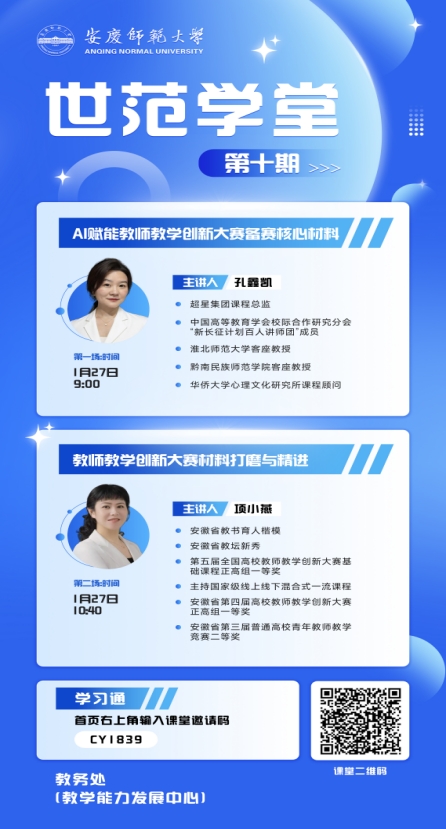 1月27日,beat365官网“世范学堂”第十期——第六届全国高校教师教学创新大赛备赛线上专项培训顺利举办。本次培训邀请超星集团课程总监孔鑫凯教授、第五届全国高校教师教学创新大赛一等奖获得者项小燕教授担任主讲嘉宾,学校参赛教师和积极参与教学创新的教师八十余人参加培训。