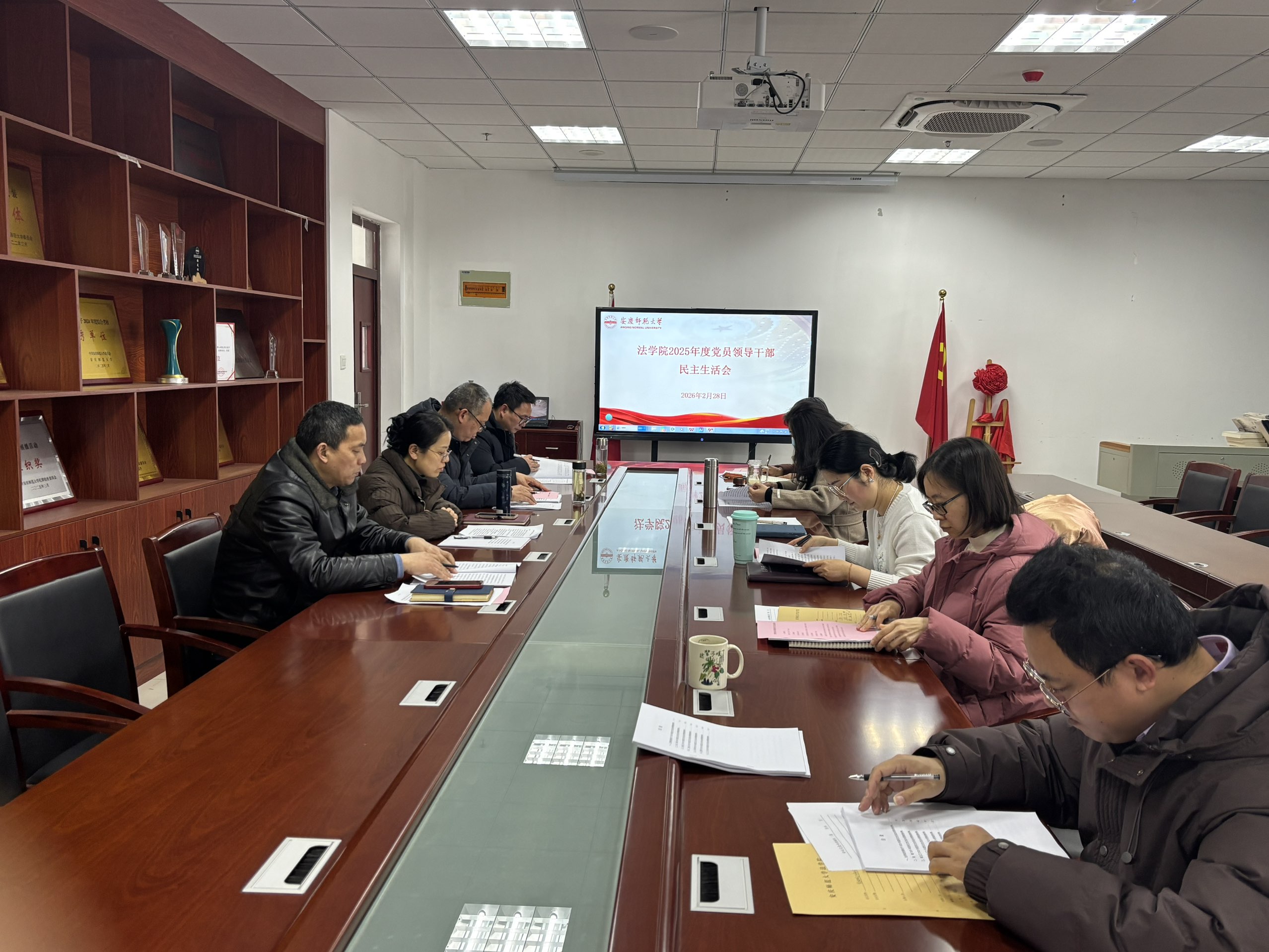 2月28日,法学院党委召开2025年度党员领导干部民主生活会。学院党委书记钱敏主持会议。学院党委班子成员、党支部书记、党委秘书(组织员)参加会议。