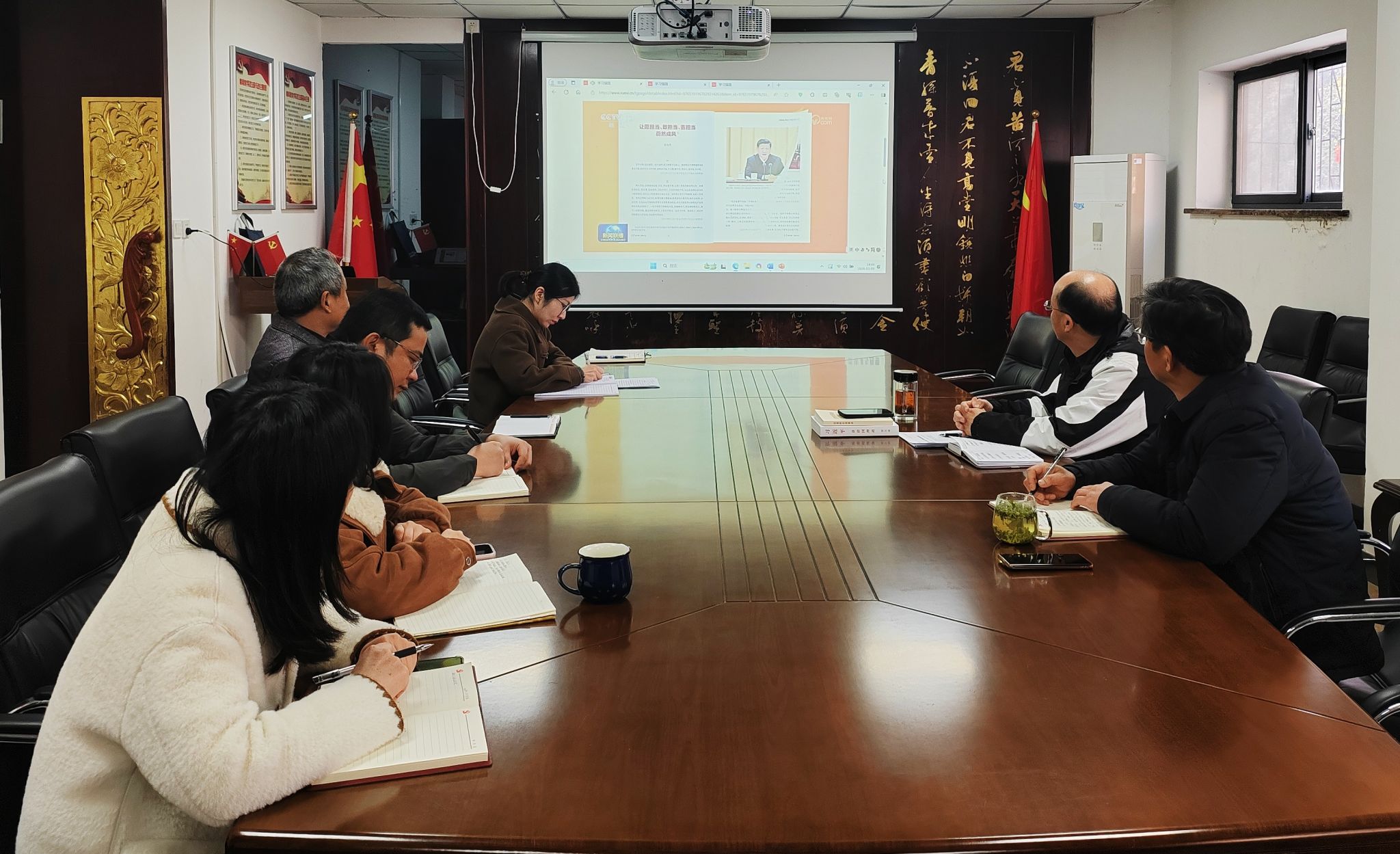 会议集中学习了习近平总书记关于树立和践行正确政绩观的有关重要论述、中共中央办公厅印发的《关于在全党开展树立和践行正确政绩观学习教育的通知》精神,学习了习近平总书记在2026年第5期《求是》杂志发表的文章《让愿担当、敢担当、善担当蔚然成风》,传达了学校党委《关于在全校开展树立和践行正确政绩观学习教育的实施方案》。