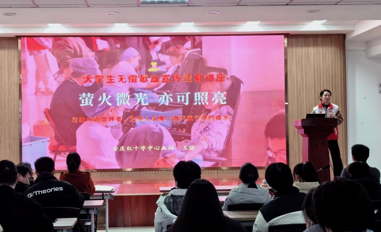 安庆红十字中心血站王弦医生受邀作“无偿献血”专题宣讲报告,围绕献血意义、科学知识、健康保障等内容进行细致讲解,帮助同学们正确认识“无偿献血”公益事业重要作用、消除心理顾虑。
