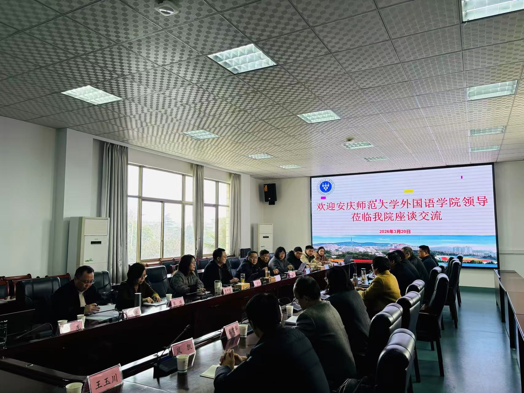 近日,外国语学院党委书记徐华胜,副院长瞿宁霞、黄全灿,携传媒学院、人文学院及外国语学院相关教师赴淮北师范大学外国语学院开展工作调研与交流。淮北师范大学科研处处长、外国语学院(区域国别学院)院长李书影等热情接待。