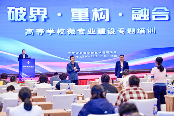 3月21日至22日,由广东省高等学校教学管理学会主办的“微专业建设专题培训会”在佛山市顺利召开。来自广东省内各高校的教务处领导、二级学院教学负责人及微专业建设骨干教师等150余人参会。培训会旨在帮助广东省高校管理者厘清微专业顶层设计逻辑,指导专业负责人掌握课程开发与产教融合的具体方法,推动微专业真正成为提升学生就业竞争力的有效载体。教务处处长潘锦云教授及人工智能与计算机学院微专业负责人程和侠副教授应邀参会并担任主讲嘉宾。