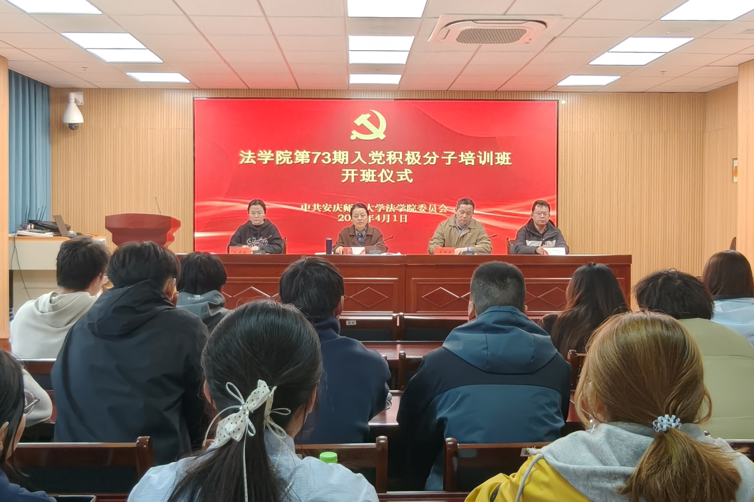 4月1日,法学院在法学楼法治实务大讲堂举办第73期入党积极分子培训班开班仪式。学院党委书记钱敏、学生党支部书记、第73期全体入党积极分子参加开班仪式。学院党委副书记、纪委书记卫功兵主持开班式。