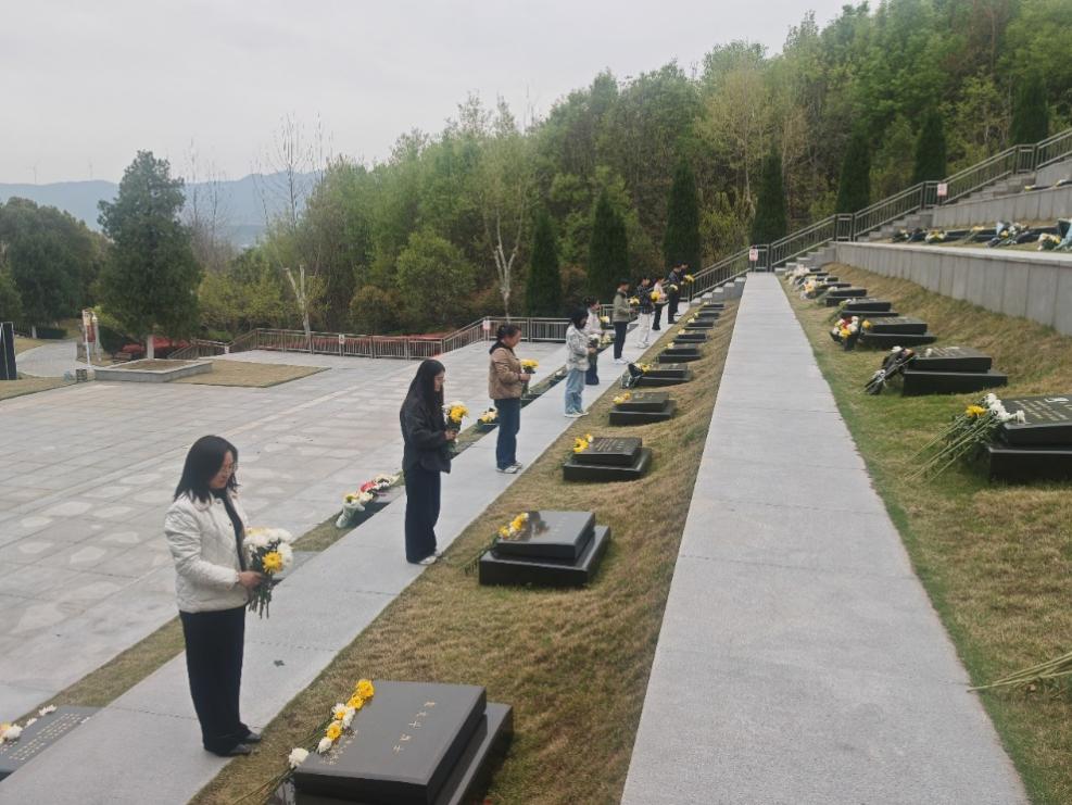 陵园内庄严肃穆,在场师生神情凝重、列队肃立,在烈士雕像前默哀、鞠躬,向革命先烈致以最崇高的敬意。随后,大家缓步走向烈士墓碑,依次敬献鲜花,寄托深切哀思。祭扫过程中,师生们严守纪律、保持肃穆,认真聆听先烈的英勇事迹,在追忆革命峥嵘岁月中重温初心使命,坚定责任担当。