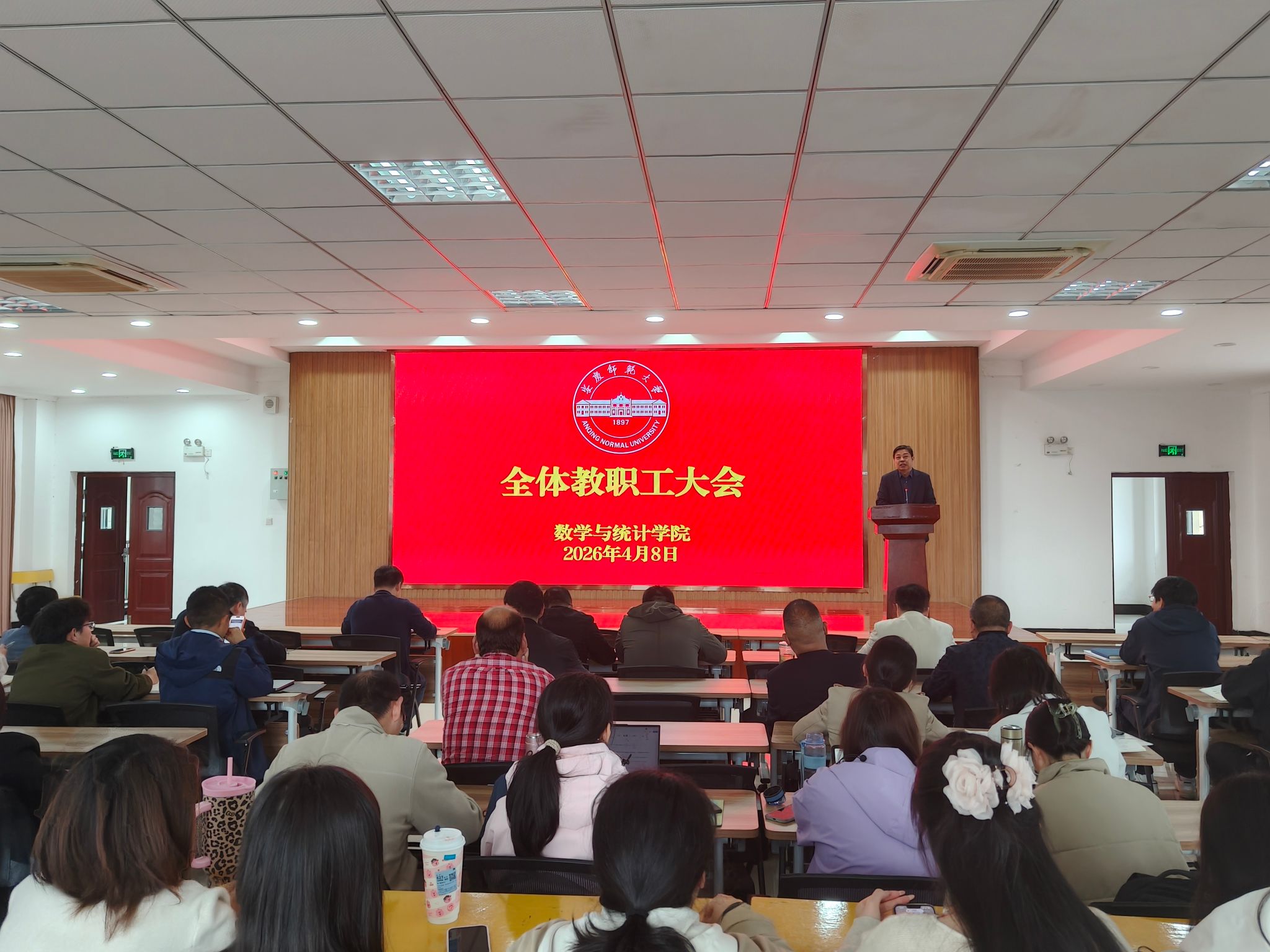 4月8日,数学与统计学院在I楼401报告厅召开全体教职工大会。数学与统计学院院长张海、副院长陈文兵及全体教职工参加会议。会议由张海主持。