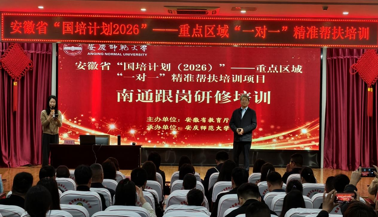 近日,由数学与统计学院、物理与天文空间学院承办的安徽省“国培计划(2026)”——“一对一”精准帮扶培训项目(第1包、第2包)跟岗研修培训,在江苏省南通市顺利开班。来自安徽省宿州市砀山县、灵璧县、泗县和萧县的263位名师、名班主任及名校长齐聚南通,开启为期数日的深度研修。