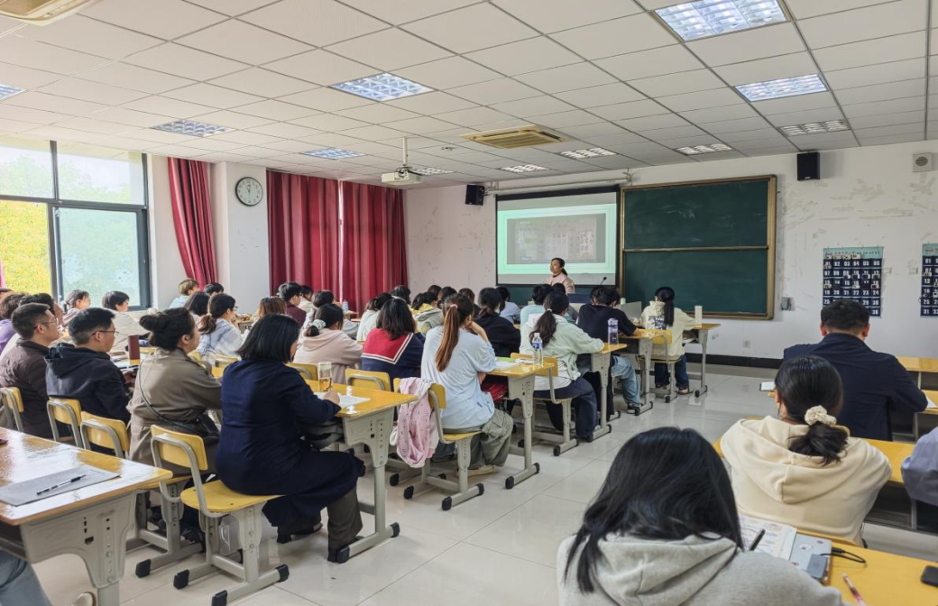 在J219教室,由学院王婷教授主讲《课程与教学论》。王婷教学逻辑严谨、讲解深入浅出,充分展现了精湛的教学技艺与良好的课堂风貌。新进教师们认真聆听、细致记录,认真学习课堂设计、师生互动、知识点讲授等实用教学方法,在观摩中找差距、学经验、促提升。