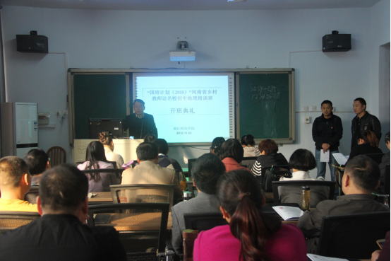 11月3日上午,ballBET贝博BB艾弗森在睢阳校区继续教育学院403教室,举行了“国培计划(2018)”——河南省乡村教师访名校初中地理培训班开班典礼。项目首席专家李学鑫教授、学科班主任李红忠副教授、生活班主任魏理老师与班级全体学员参加了开班仪式。仪式由学科班主任李红忠主持。