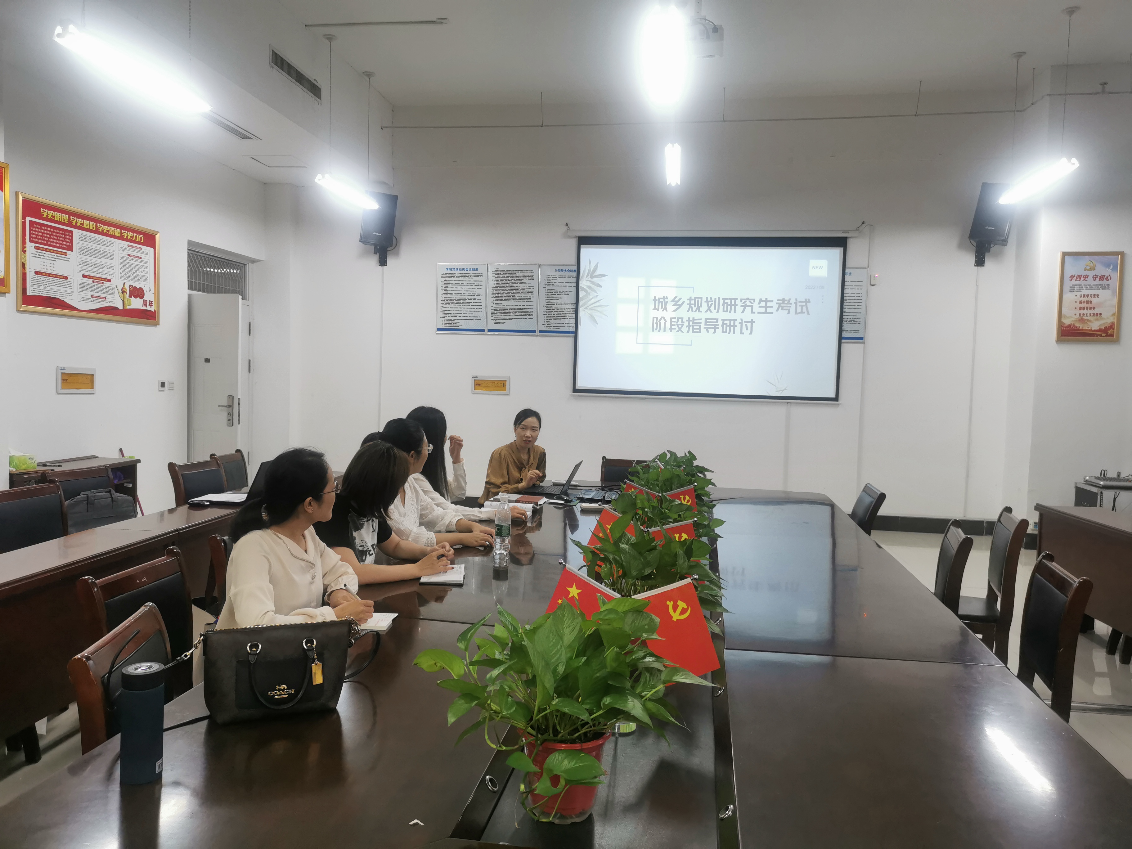 首先,教研室主任朱玲玲分析了本专业2023年研究生考试报名的基本情况,要求每一位老师认真负责对学生全程进行指导。随后,芦杰老师就历年城乡规划系考研成绩做了系统的分析,并与各位教师讨论目前城乡规划专业研究生考试和指导存在的问题,提出了近阶段研究生考试指导工作的重点,帮助学生选择与成绩相适合的学校,同时帮助学生调整心态,迎接2023年研究生考试,争取取得满意的成绩。