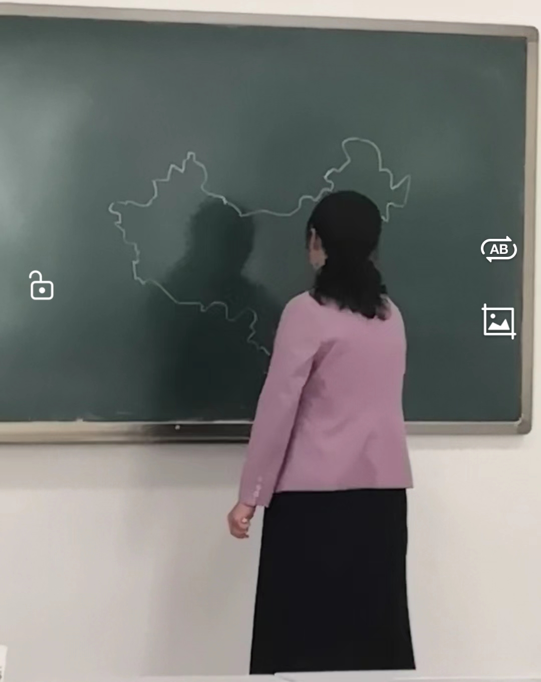 讲座结束后,杨笑䶮与程黎老师就如何练好三板技能与同学们进行交流和探讨。程黎老师现场快速地在黑板上给大家演绎绘制了中国轮廓图,她高超的板图技能博得了同学们的一片掌声。杨老师和程老师都强调“三板技能”提升没有什么金钥匙,必须多看多练,是一个逐步提高的过程。