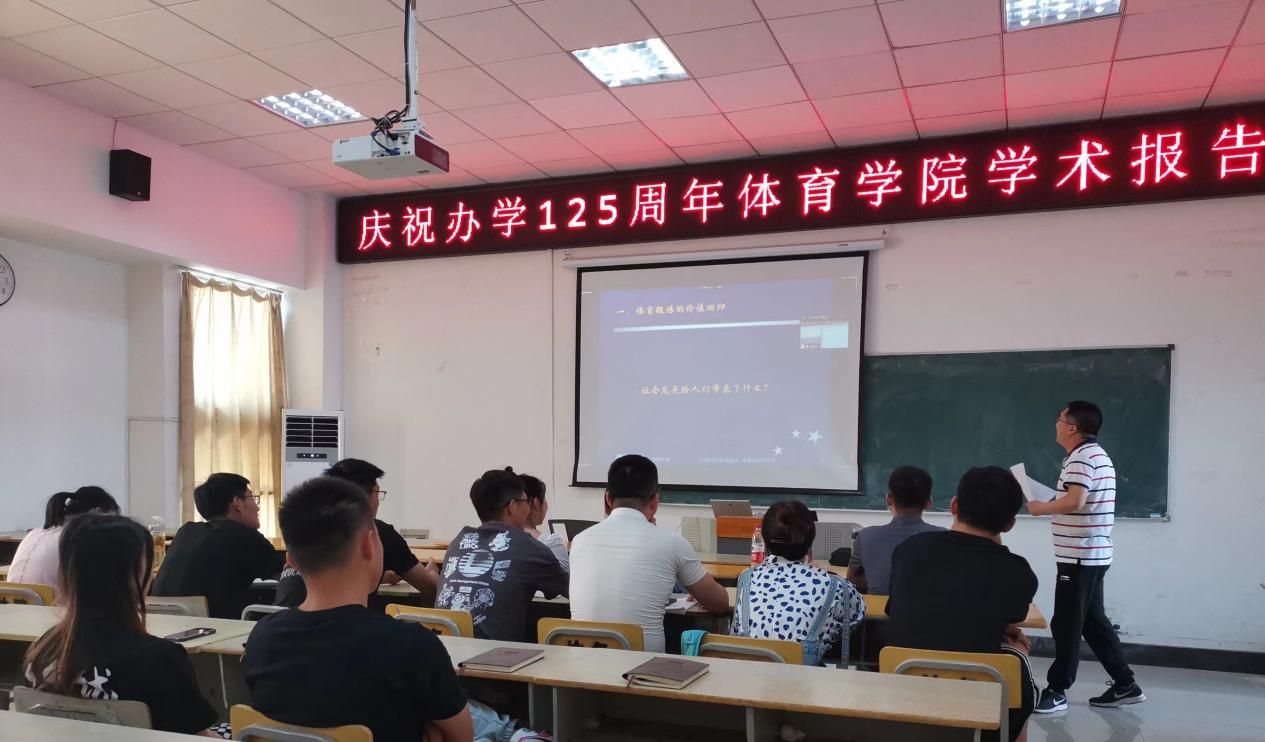 为庆祝beat365平台唯一官网办学125周年,提高学院办学层次与科研水平,营造良好的学术与研究氛围,提升师生的科研创新能力。结合当前疫情防控形势,5月25日下午,在体育馆多媒体教室,体育学院孟海江博士、教授采用线上与线下相结合的方式为体育学院全体研究生作了题为“体育锻炼的健康价值”的学术报告。