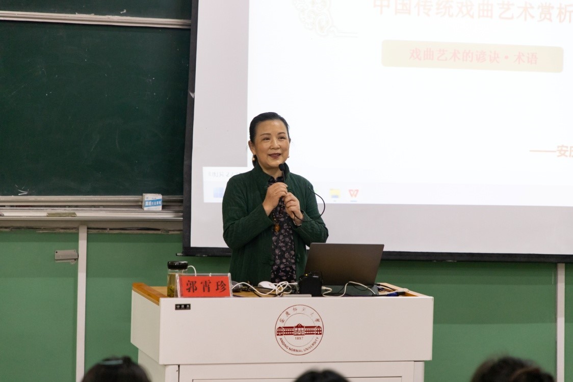 5月18日下午,国家一级演员,黄梅剧艺术学院郭霄珍老师在菱湖校区化学楼二阶作了一场题为“戏曲的谚诀术语”学术讲座。黄梅剧艺术学院全体本科生,艺术(戏曲)专业研究生和其他戏曲爱好者参与了本次讲座。讲座由黄梅剧艺术学院副院长储著炎博士主持。