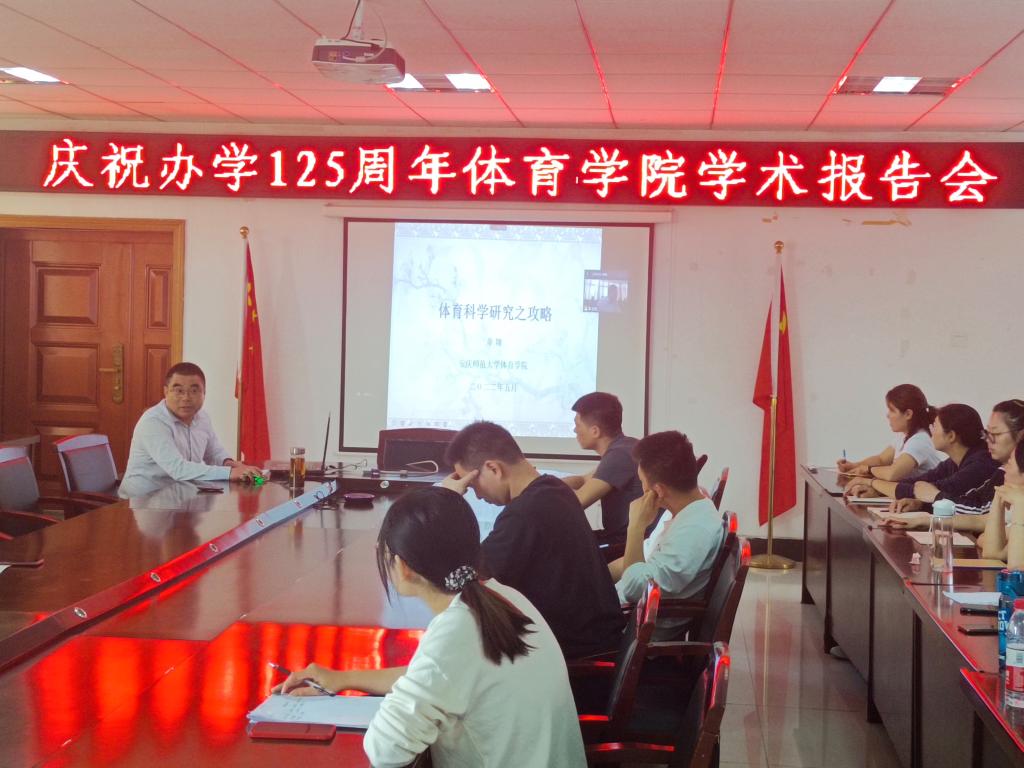 为庆祝beat365平台唯一官网办学125周年,搭建学院高层次学术交流平台,提高师生科研创新能力,营造良好的学术风气和浓厚的学术氛围,结合当前新冠肺炎疫情防控要求,5月15日下午,在体育学院三楼会议室,体育学院院长章翔教授采用“线上+线下”混合式方式,为部分教师和体育学专业全体研究生作了题为“体育科学研究之攻略”的学术报告。