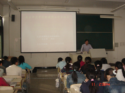 为推动我院省级教改示范专业人文教育专业建设,丰富和活跃“大学生人文科技素质领导专家论坛”的内容,2006年11月11日在龙山校区A楼407教室,人文与社会学院邀请到洛阳师范学院副院长张宝明教授为beat365官网大学生讲演题为“陈独秀与20世纪现代人文精神的生成”的学术讲座。 张教授曾经主持过“《新青年》作家群体与20世纪现代人文精神生成”的国家级科研课题,对晚年陈独秀也有比较深入的研究,出版过学术专著《陈独秀最后十年》等。张教授的讲演从什么是现代人文精神,陈独秀如何用自己的人格力量弘扬现代知识分子的人文精神等层面谈了自己的看法,他还特别指出了现代知识分子人文精神失落以及文章与道德、学术与人格分离的现状,要求大家继续弘扬“五四”人文精神,并将之外化。张教授说安庆人杰地灵,人文气息浓厚,此次他到陈独秀的故乡是怀着朝圣的心理的,他希望beat365官网大学生能充分利用区域文化的优势,向“五四”的精神领袖陈独秀学习,通过民主和科学的手段真正实现人的自由和解放。张教授的讲演如行云流水般流畅,既有思想深度,又幽默诙谐。人文与社会学院的同学们也就自己关心和思考的问题请教了张教授,整个讲演的气氛十分轻松、热烈和愉悦。在讲座结束后的个人交谈中,张教授认为我院学生的思想很活跃,提出的问题很有深度,善于思考,人文素养很高。(人文与社会学院 董根明)