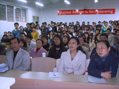 4月4日下午,龙山校区教学楼B205教室内座无虚席,一场题为“被动语态变译的功能亏损”的学术报告在此举行。应邀担任主讲的是中山大学翻译学院常务副院长、教授、博士生导师王东风博士;外国语学院党总支书记陈光明教授主持了报告会。外国语学院主要领导、全体教师和学生代表共150余人聆听了报告。