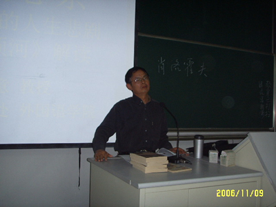 储诚意教授首先对俄罗斯文学进行了简要地介绍。他指出俄罗斯文学是世界文学的重要组成部分,对世界文学作出了突出的贡献。诺贝尔文学奖获得者、俄罗斯著名的文学家肖洛霍夫所著的《静静的顿河》就是杰出的代表。接着,储教授从“抗争与无奈——葛利高里的人生悲剧”对《静静的顿河》进行了解读。他认为,《静静的顿河》是一部宏伟的文学著作,它成功地塑造了许多人物形象,而葛利高里正是他们的典型与精华。他还认为:一、葛利高里的悲剧是他个人的、性格的悲剧。一个渴望独立、自由与真理的人生活在一个无法找到独立、自由与真理的世界里,尽管他抗争不愿与现实妥协,想探索一条正确的道路,但在残酷的现实面前,他感到无能为力,甚至无奈。他无法理解周围的世界及周围的人们,更无法改变周围的意见及周围人们的命运,自己也难逃悲剧命运的结局;二、这部著作也反映了俄罗斯人民对和平的渴望,也折射出了对人性的呼唤。