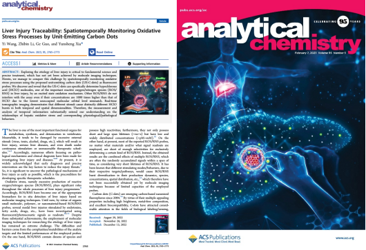 近日,资源环境学院汪宜博士在国际TOP期刊《Analytical Chemistry》(IF=8.008)发表题为《Liver Injury Traceability: Spatiotemporally Monitoring Oxidative Stress Processes by Unit-Emitting Carbon Dots》的研究性封面论文。汪宜博士为该论文第一作者,安徽师范大学和beat365平台唯一官网为共同署名单位。