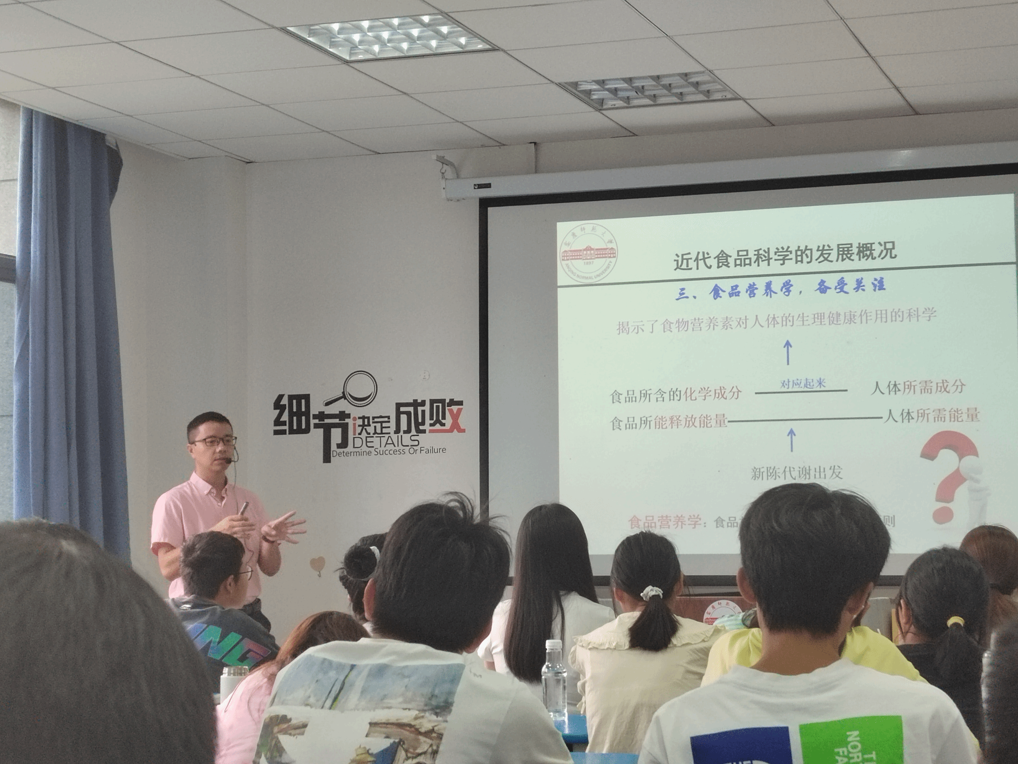 李从虎副教授就食品科学发展的概况、食品科技史的四个里程碑、食品安全与卫生、高新技术在食品领域中的应用、食品科学的发展任务等进行了系统且全面的介绍。李从虎副教授勉励广大学生,努力学好食品科学文化知识,以提高人民身体健康为宗旨,保障食品安全与卫生,提升新食品开发能力,不断推动食品法规和标准化建设。