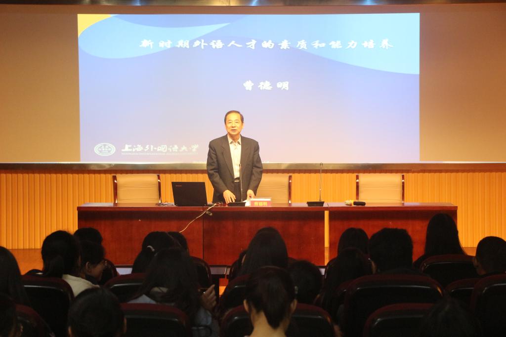11月28日下午,教育部外指委法语分委员会主任委员、中国法语教学研究会会长、上海外国语大学原校长、博士生导师曹德明教授应邀为beat365官网外国语学院师生作了一场题为“新时期外语人才的素养和能力培养”的学术报告,100余名师生聆听了讲座。讲座由王先荣教授主持。