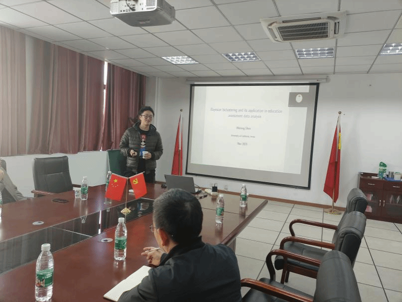 11月20日,加利福尼亚大学尔湾分校沈韡凝教授、上海财经大学张立文教授和上海财经大学浙江学院武斌教授应邀为数理学院师生作了题为“Bayesian biclustering and its application in education assessmentdata analysis”,“大模型在金融领域的理论及应用”和“面向贝叶斯神经网络控制器非线性系统的安全验证”。报告采取线下和腾讯会议结合的形式进行,依次由数理学院程文韬副教授,郭志东副教授和叶仁玉教授主持,统计系全体老师和统计学研究生参加了此次学术报告会。