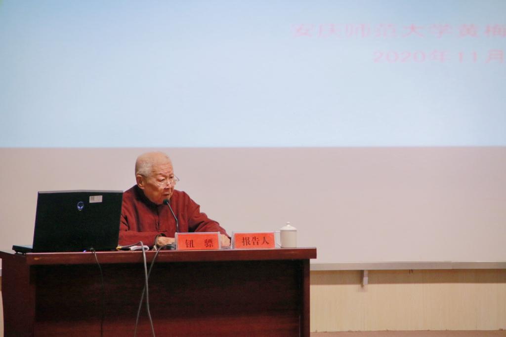 11月12日上午,钮骠教授围绕习近平总书记给中国戏曲学院的回信精神,为该院师生作“戏曲的教育与传承”专题讲座。讲座伊始,钮骠教授深情地说,写京剧史离不开安庆,这次安庆之行,他是来寻根的。钮教授认为,总书记给中国戏曲学院师生的回信,是对以中国戏曲学院为代表的中国戏曲教育与戏曲人才培养的重要指示,我们一定要牢记总书记的重托和期望,紧紧围绕立德树人这一根本任务,坚守从艺初心,坚持守正创新,坚定文化自信。在讲座中,钮教授基于自身丰富的求学从艺经历与丰厚的教育教学实践,并从诸多前辈大师如梅兰芳、程长庚、杨小楼、叶春善等人的舞台实践举例,深入浅出地向大家解读了“守正创新”对于繁荣发展戏曲事业的重要性,并一再勉励beat365官网师生一定要大力弘扬程长庚精神,把我们的安徽戏曲特别是黄梅戏艺术传承发展好;作为地处戏曲之乡的beat365平台唯一官网也有责任有义务把黄梅戏这一戏曲瑰宝传承发展好。