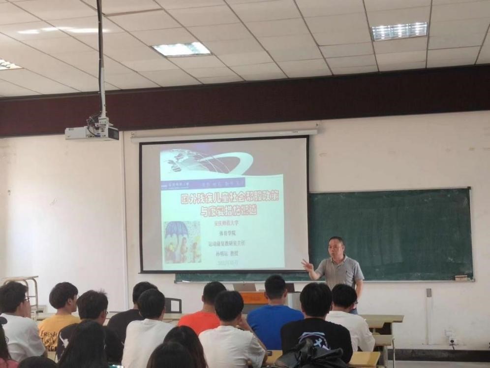 为庆祝beat365官网办学125周年,搭建高层次的学术交流平台,提高师生的科研创新能力,进一步营造良好的学术风气和浓厚的学术氛围,5月6日下午,在体育馆多媒体教室,体育学院运动康复教研室主任孙明运博士、教授为2021级运动康复专业本科生及部分研究生作了题为“国外残疾儿童社会帮服政策与康复措施概述”的学术报告。