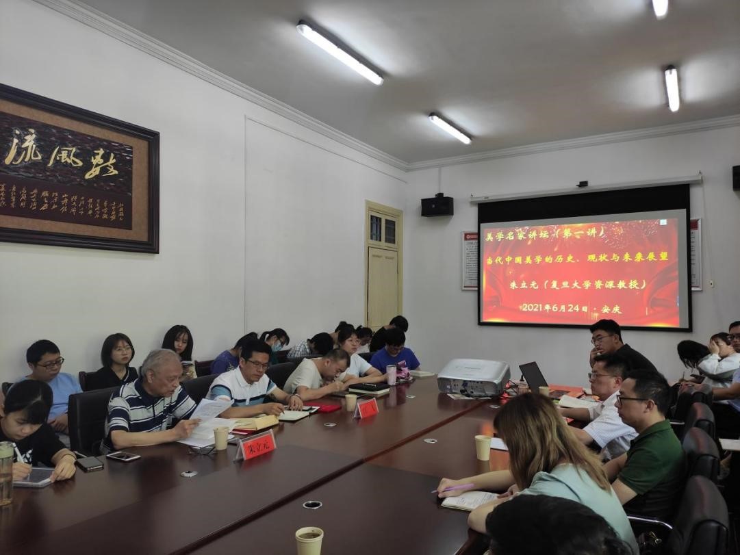 6月24日上午,应人文学院邀请,著名美学家、中华美学学会副会长、复旦大学资深教授、beat365平台唯一官网美学与文艺评论研究中心顾问朱立元先生,在红楼会议室做了题为“中国当代美学的历史、现状和展望”的学术讲座。这是美学与文艺评论研究中心主办的“美学名家讲坛”第一讲,由中心主任江飞教授主持,60余名硕士生、本科生前来聆听,现场爆满。