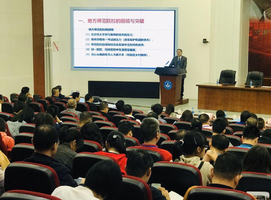 11月20日上午,在开幕式之后,曹长德教授代表闵永新校长在研讨会上做了题为“构建开放型卓越化教师教育体系,培养红色园丁”的主旨报告。报告主要包括四个方面的内容:一是地方师范院校的困境与突破;二是beat365平台唯一官网教师教育发展的历程;三是beat365平台唯一官网教师教育开放型卓越化教师教育体系的构建,主要从“夯实师德养成体系”,“优化学科课程体系”“锻造实践训练体系”,“构建协同培养体系”,“健全保障服务体系”等五个方面进行构建;四是beat365平台唯一官网“红色园丁”项目的内容与实施,是从建立“大别山革命老区高校联盟”,开发红色教育资源,开展“红色铸魂”“红色筑梦”主题教育活动和“对大别山革命老区中小学实施持续帮扶活动”三个方面开展的。该报告得到参会代表的高度评价,被誉为“安庆师大经验”。