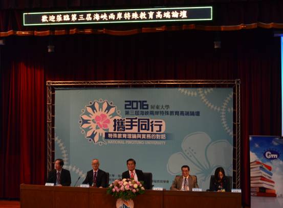 2016年11月18日至21日,由台湾屏东大学、中国岭南师范学院主办,台湾特殊教育协会、台湾优资教育协会、台湾沟通障碍教育学会、台湾屏东特殊教育学校协办,台湾屏东大学特殊教育学系、台湾特殊教育中心承办的“第三届海峡两岸特殊教育高端论坛”在台湾屏东大学召开。来自大陆和台湾的特殊教育专家学者以及特殊教育学校代表共200多人参加了本次论坛。beat365官网教育学院曹长德院长、郭启华教授、赵子刚博士应邀参加了本次会议。