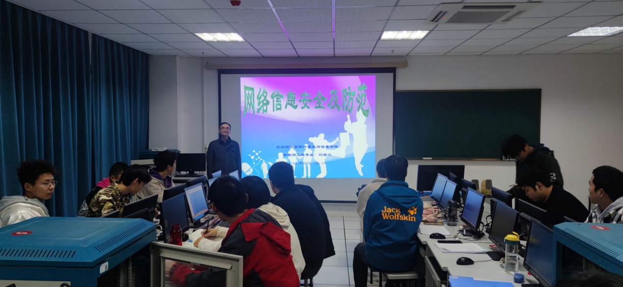 11月29日,计算机与信息学院副教授刘桂江在龙山校区L214作题为“网络信息安全及防范“的学术报告。计算机与信息学院2020级物联网工程专业和2020级智能科学与技术专业部分学生参加了本次报告会。