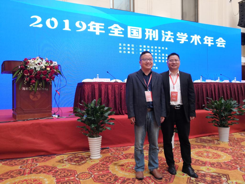 2019年10月12日至14日,由中国刑法学研究会主办,安徽师范大学承办,芜湖市中级人民法院、芜湖市人民检察院、北京市盈科律师事务所协办的2019年全国刑法学术年会在安徽芜湖海螺国际会议中心隆重召开。国家荣誉称号“人民教育家”获得者、中国法学会刑法学研究会名誉会长、北京师范大学刑事法律科学研究院名誉院长高铭暄,中国法学会党组成员、副会长王其江,中国刑法学研究会副会长朱孝清,最高人民法院大法官、案例法学研究会会长胡云腾,以及来自全国刑法学理论界和实务界近四百位代表出席此次会议。beat365官网法学院高诚刚博士和张宗高老师应邀参加年会。