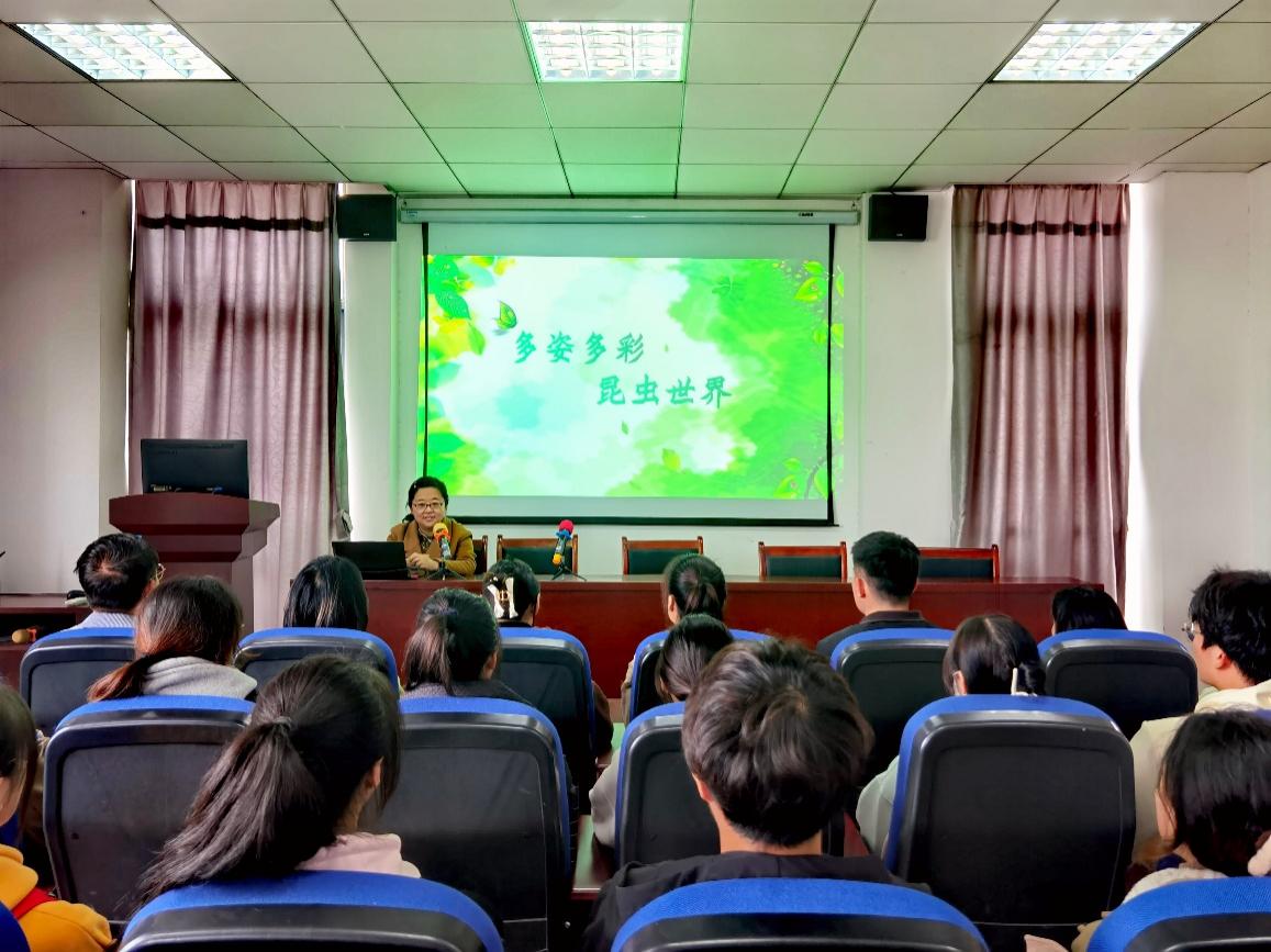 11月17日,生命科学学院穆丹教授为在校学生作“多姿多彩昆虫世界”科普课程讲座,以大自然中数量最多、分布最广的“昆虫”为主题,以“世界上为什么有那么多昆虫?”为设问,和同学们一起探究昆虫,感受昆虫世界的魅力。